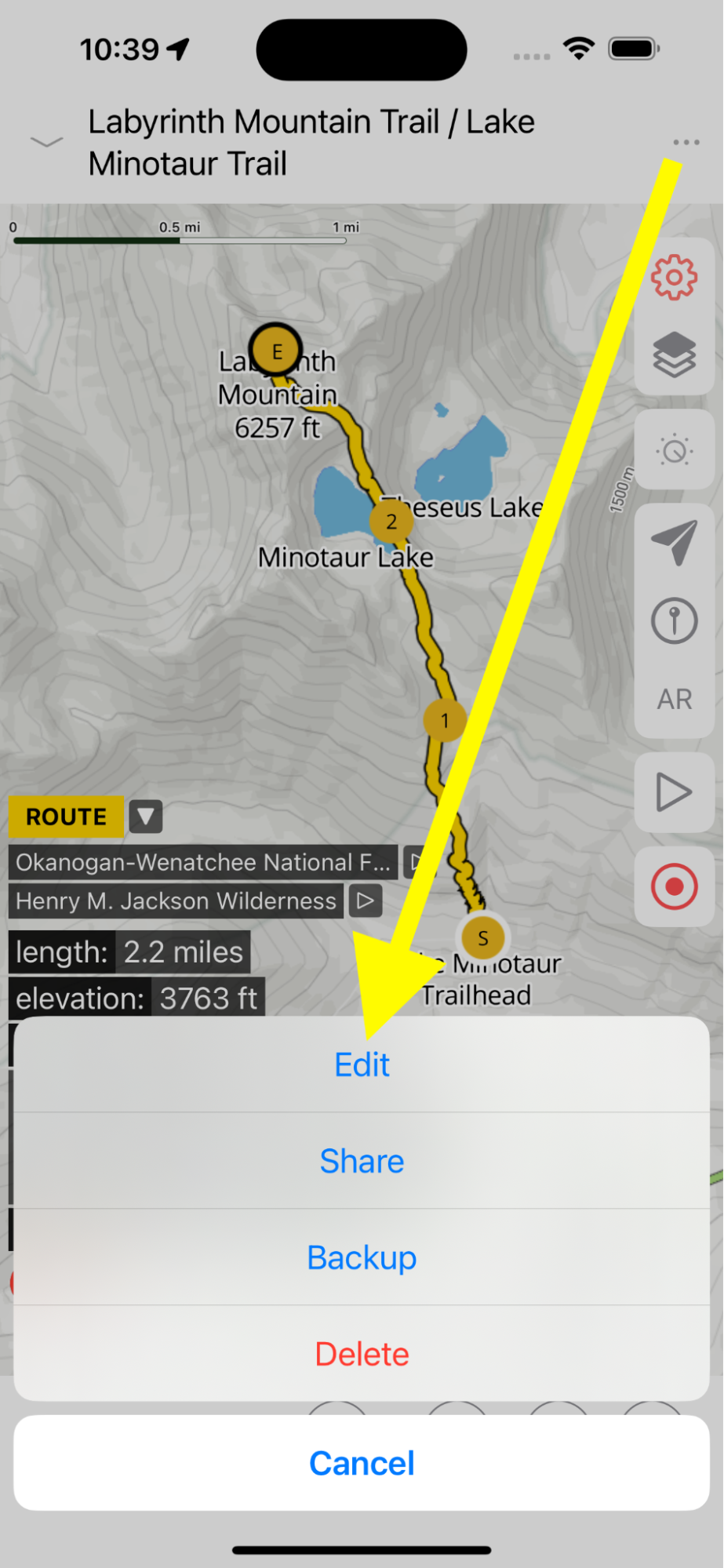Edit RouteIf you need to modify a route you can tap on the Edit button. |