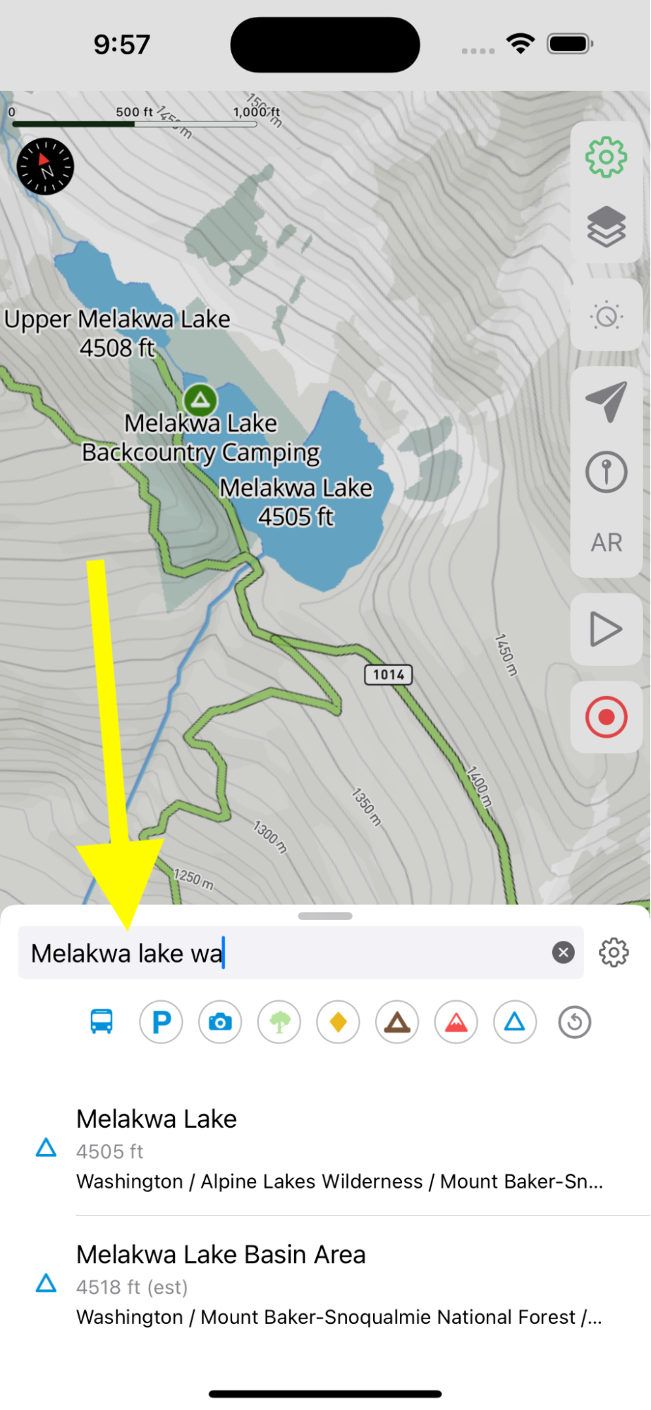 FindTap on the find button to search for locations. Search always works even without internet access. When you use this for the first time you will need to install the search feature. Search can be installed by country.