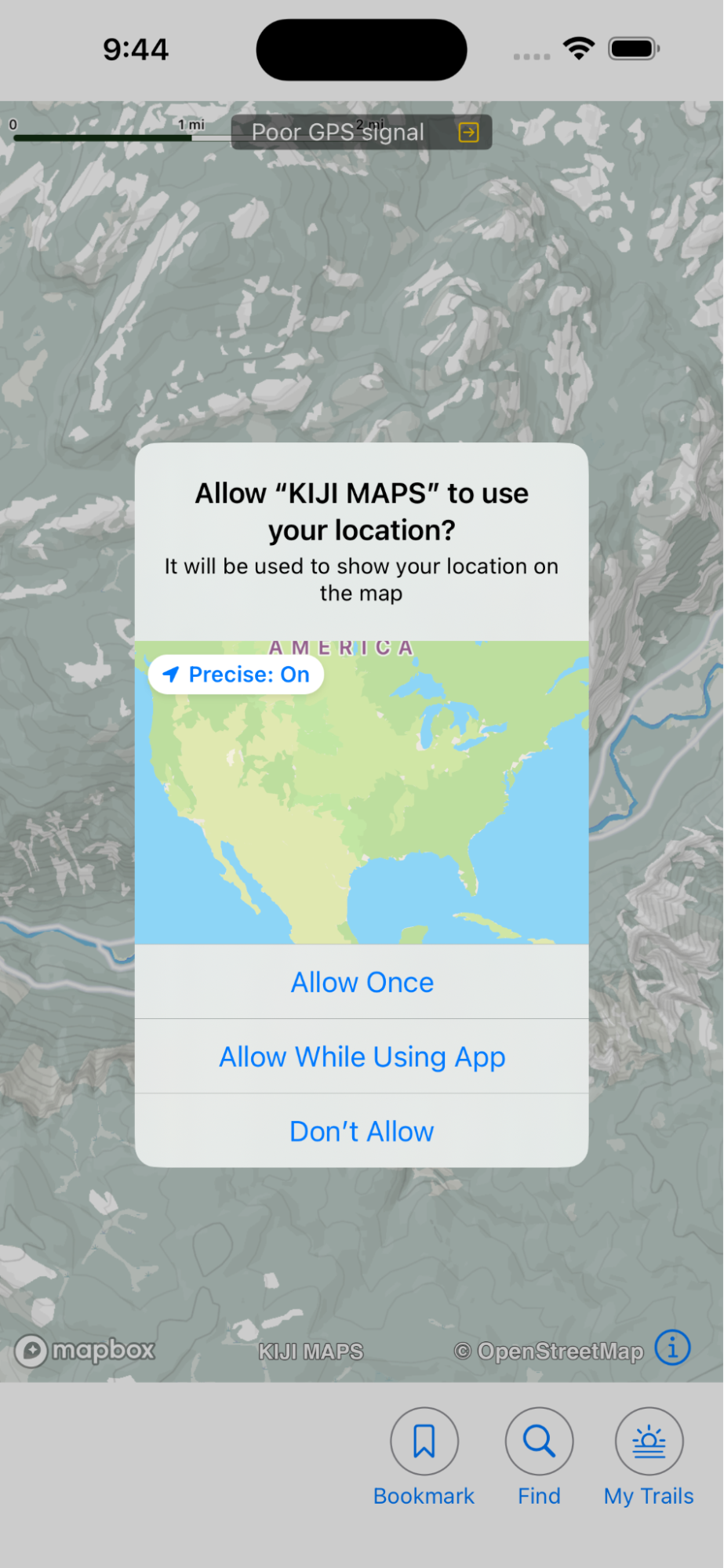 Location AccessAfter the signup is successful you will be asked for permission to your location. Please choose the "Allow While Using App" option. If you don’t give permission the app will still work but some features will be disabled e.g. recording a route. |