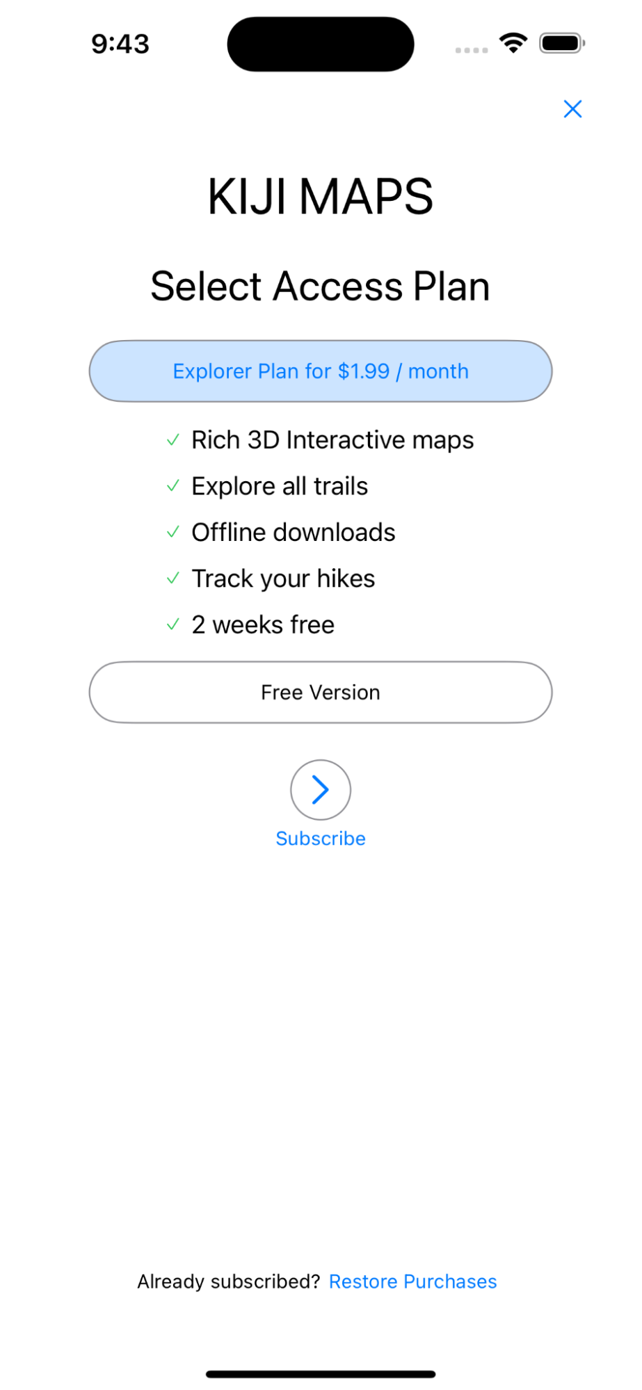 When you install the app you will be presented with a choice to subscribe to an access plan.